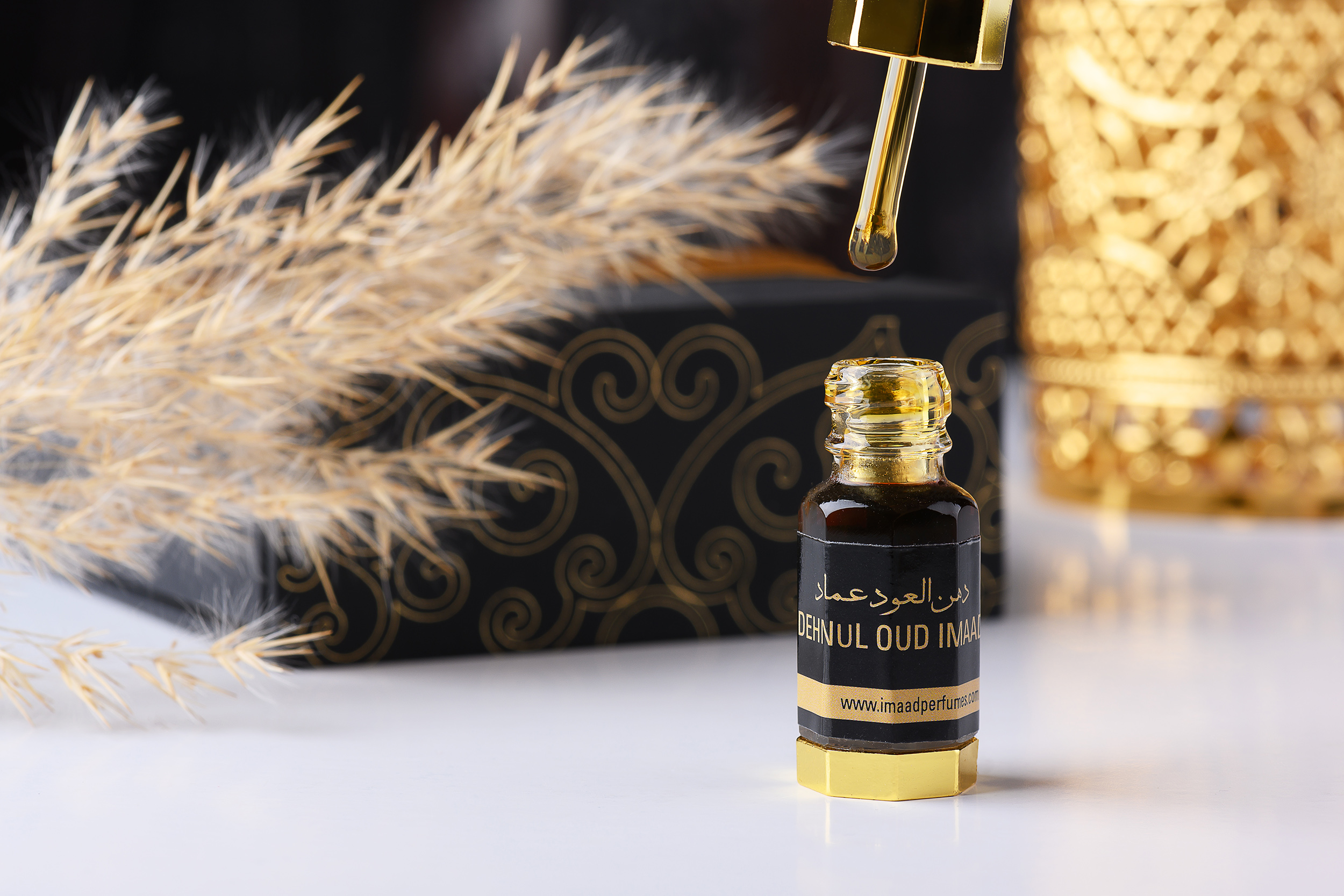 Dehn ul Oud Imaad is an exquisite Indian agarwood oil extracted from selected agarwood chips